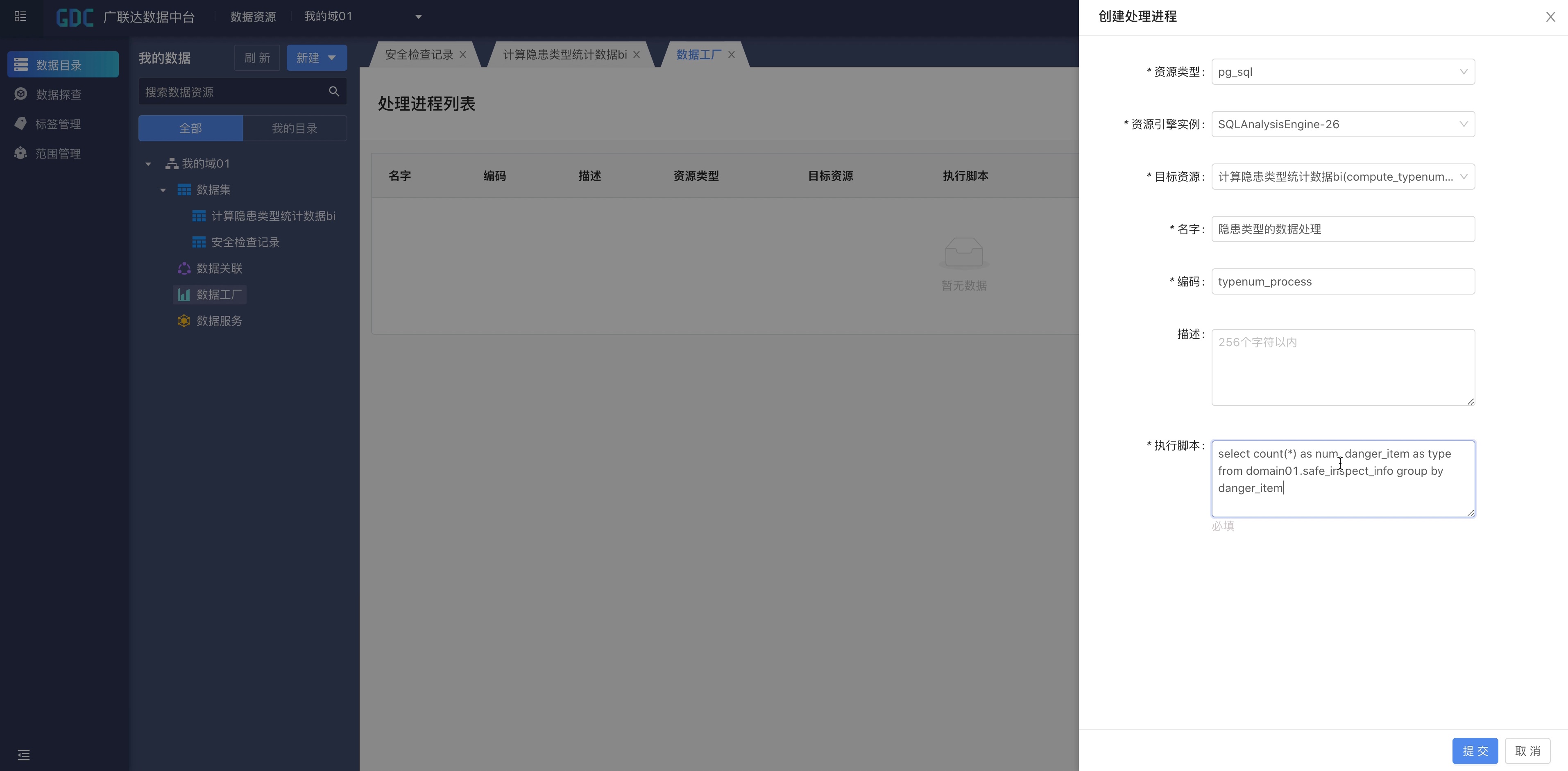 • 实时和离线的数据加工处理:支持SQL脚本对数据中台的数据进行实时或离线的加工处理。