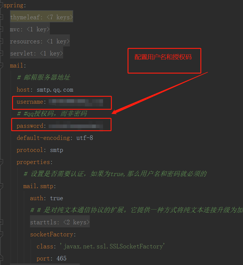 由于工程中用到了spring提供的邮件服务,所以此处需要改为您自己的邮箱配置
