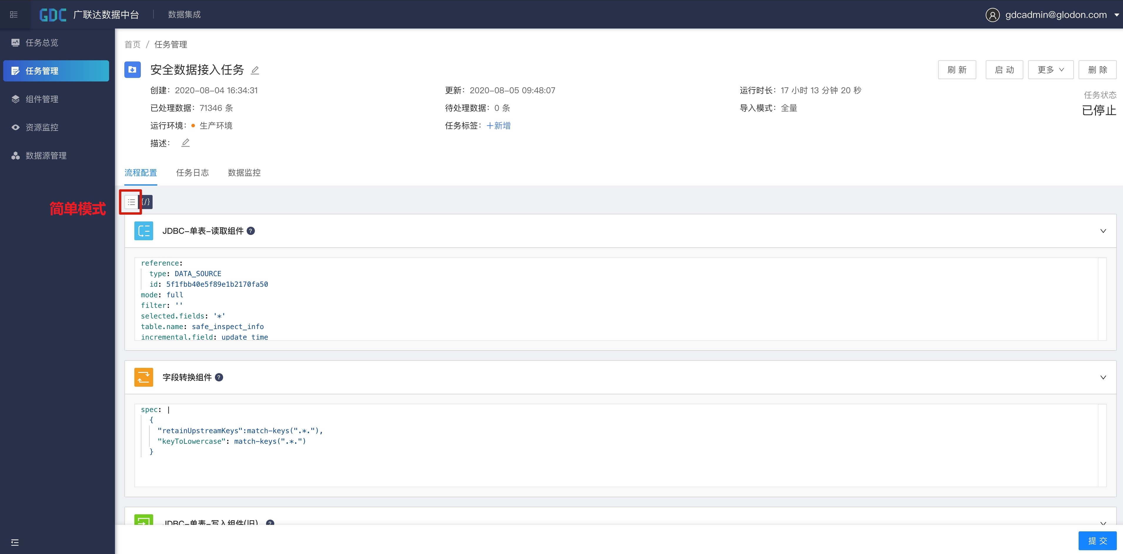 点击任务上方的“启动”按钮,集成任务正式开始运行。